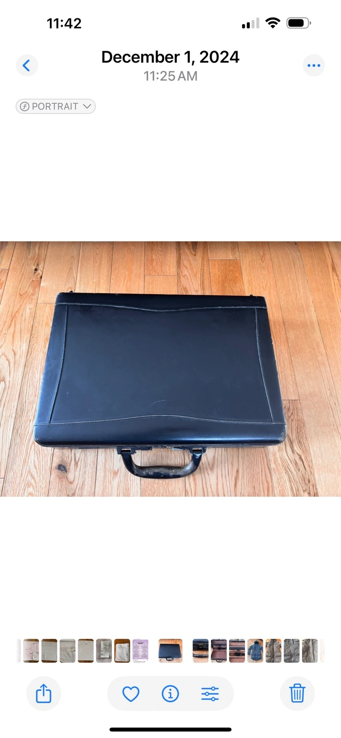 Mens black leather briefcase..in good condition on the outside but in great condition on the inside..handle is very worn..
