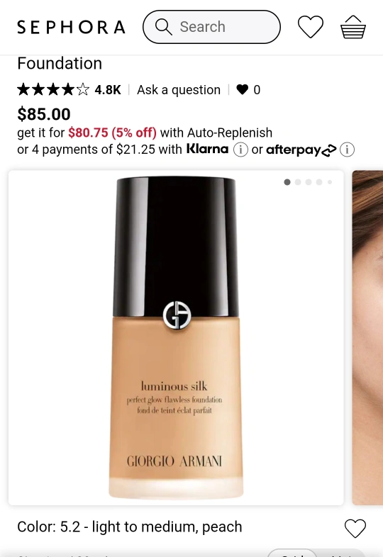 Giorgio Armani Luminous Silk foundation NEW Shade 5.2, light to medium peach. Perfect glow flawless foundation.