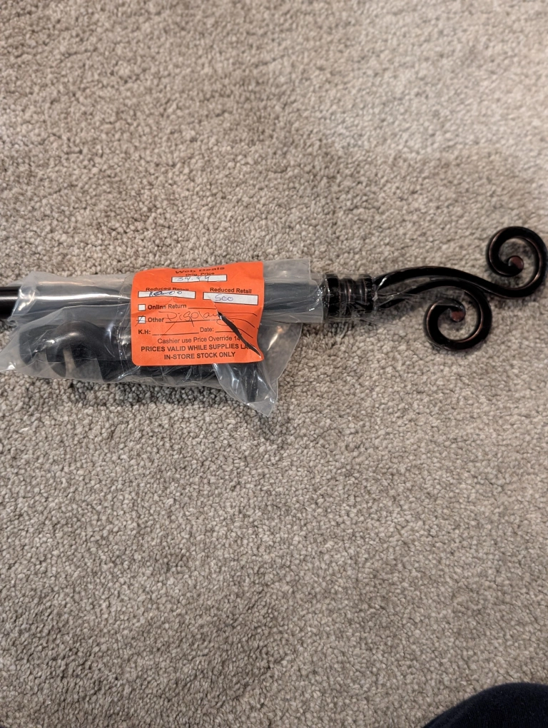 Buy & SellBlack Metal Curtain Rod with FinialsBlack Metal Curtain Rod with Finials$20New in package. Black metal curtain rod with decorative finials. Includes hardware. Approximately 48 inches long. And a grey rod same length.WHERE TO MEETRiverbendView MapSELLERverifiedRomeoRiverbend902 reviews0 chats·0 favorites·6 viewsSEND CHAT TO SELLERHi Romeo! I’m interested in your listing.Hi Romeo! I’m interested in your listing.Get the Karrot app to chatSign In to chat