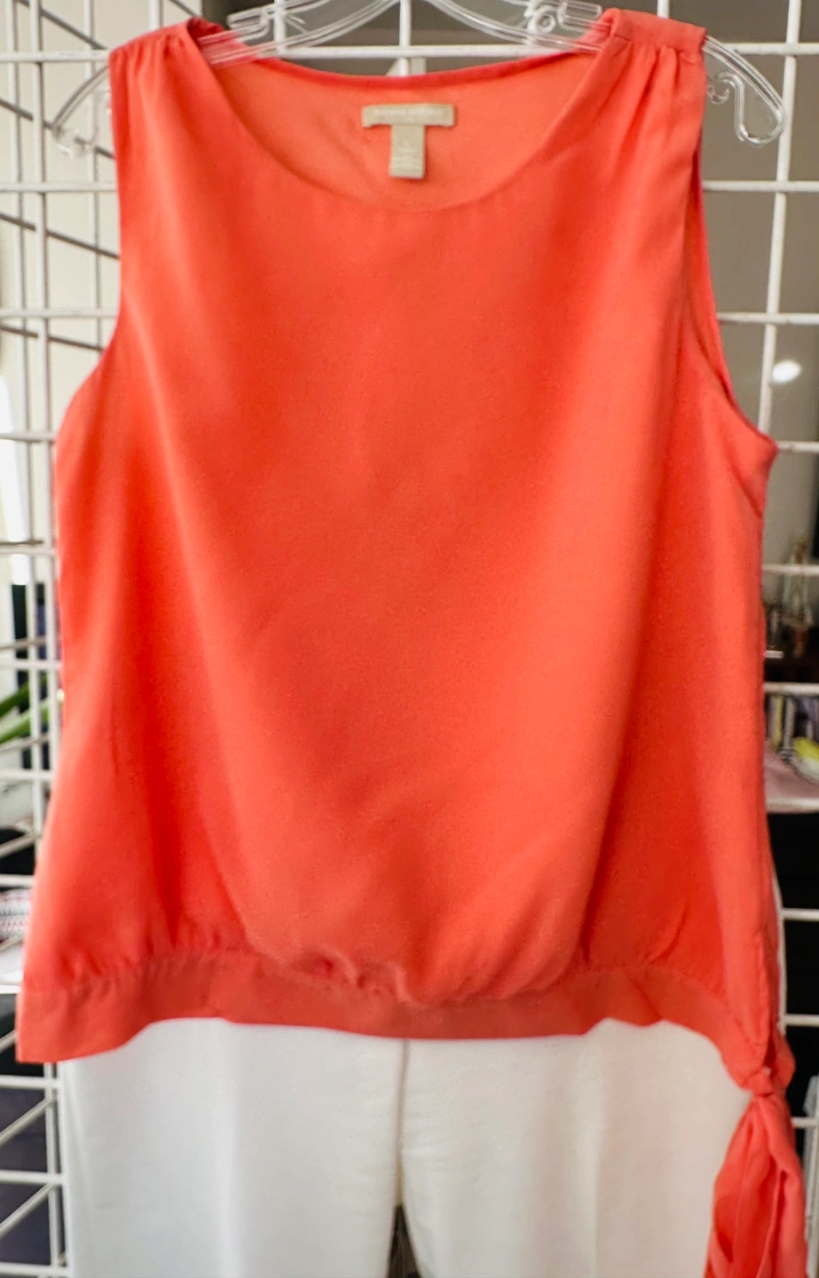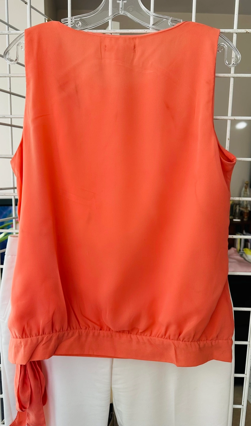 Beautiful coral sleeveless top. Size large. Elasticated waist. Side tie detail. Lightweight fabric. Perfect for summer.