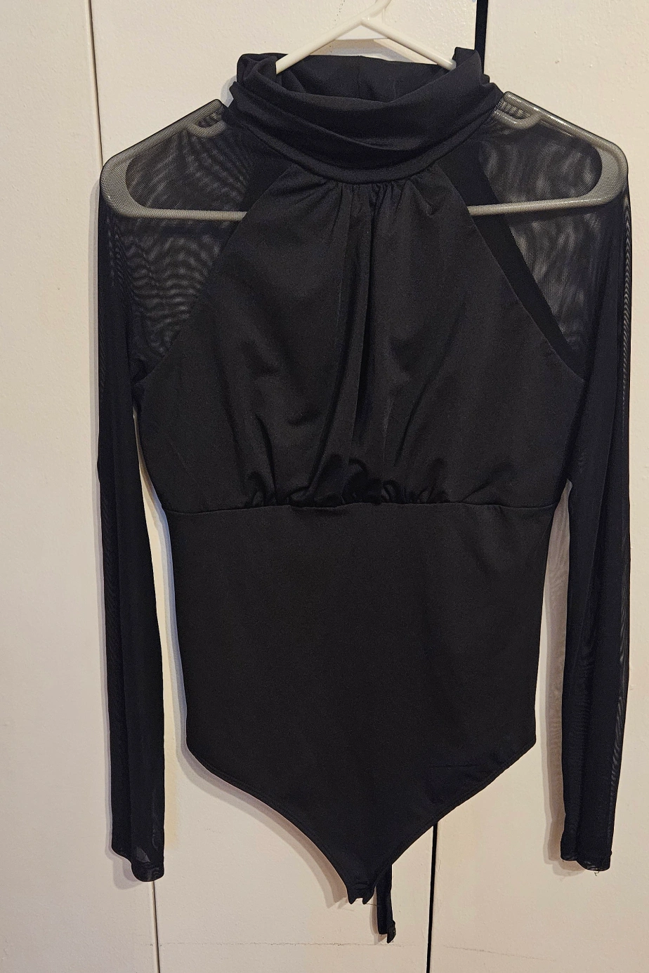 Black Mock Neck Mesh Bodysuit-Never been worn!