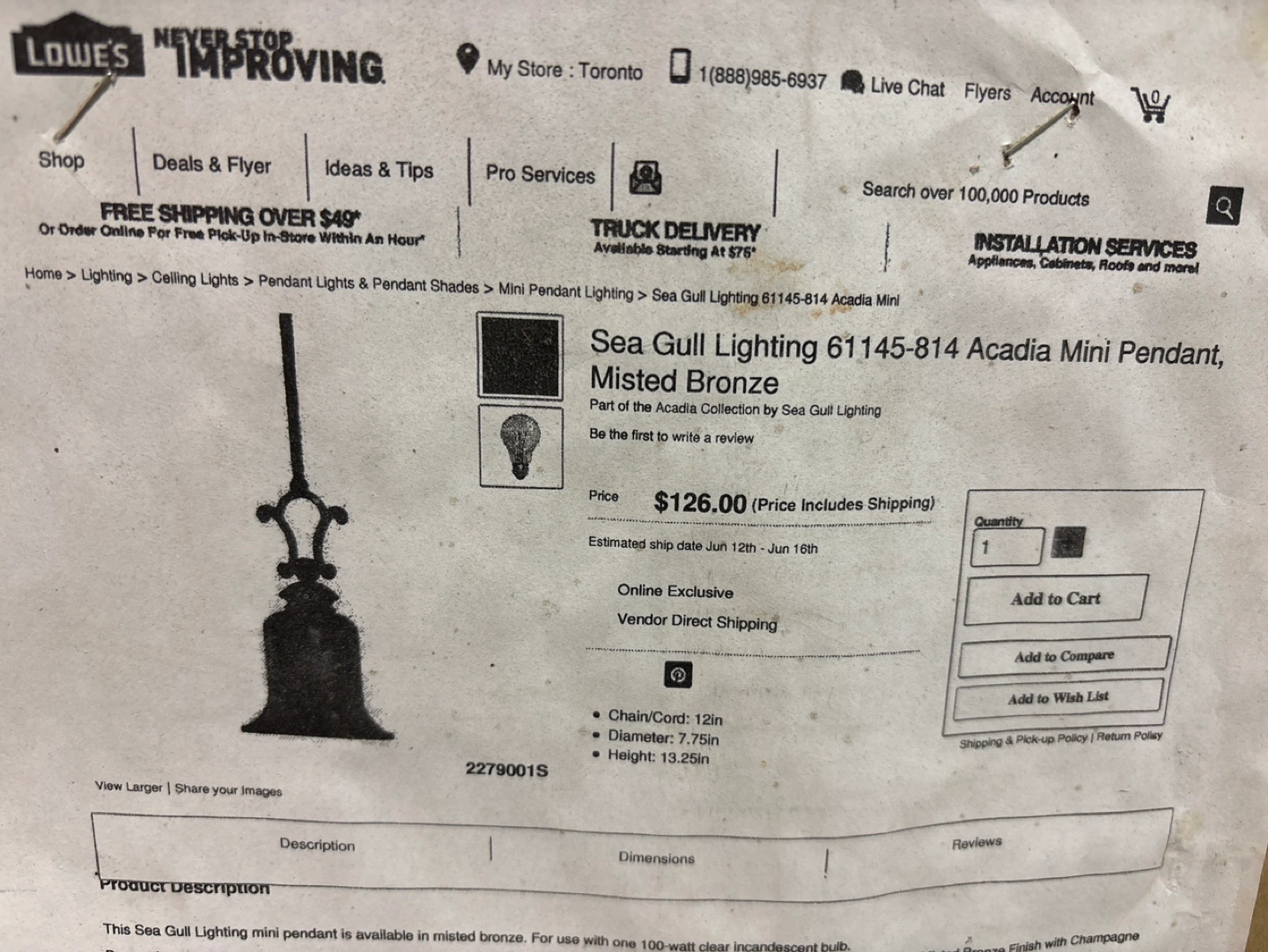 Mini pendant light fixture. Misted bronze finish. One 100W max bulb. Part of the Acadia Collection by Sea Gull Lighting.