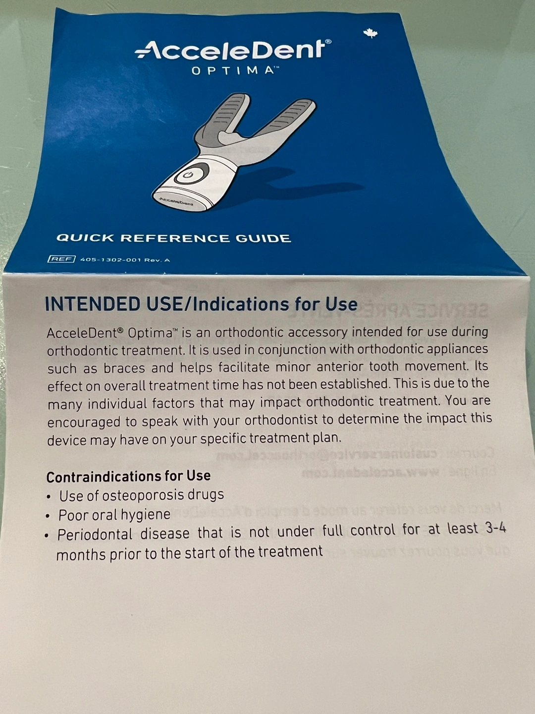 362Orthodontic accessory intended to facilitate orthodontic treatment. Used during Invisalign treatment. The vibration is supposed to shorten the duration required for Invisalign use. Paid a few hundred dollars. We would like to give it away. Caveat: there is strangely an expiry date (see photo). We tested this accessory and it seems to function properly after charging. Also, please note that the battery no longer become fully charged, but the device is still functional. Please also see the last photo for contraindications for use. Pick up only. My building is in the Yonge and Finch area.