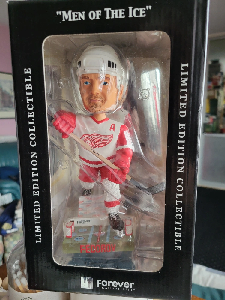 70Forever Collectibles bobblehead figurine. Limited edition collectible. NHLPA and NHL licensed product. Features Sergei Fedorov in a Detroit Red Wings uniform. 'Men of the Ice' collection. All Sales Final. No returns. Cash only please. Thanks.