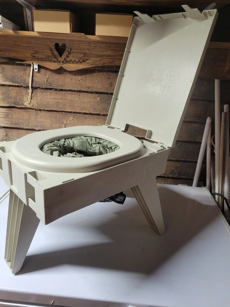 Portable camping toilet. Includes waste bag and poo powder. Lightweight and easy to clean. Ideal for camping, hunting, and fishing.also the privacy shelter 300 for all