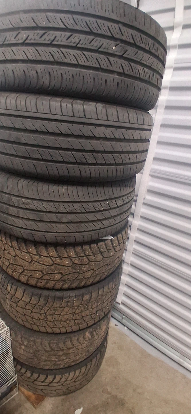Four rims 225/45 R17's 5×120 bolt patern with a little bit of tread left on the winter tires. Also comes with 3 low profile summer sport tires.