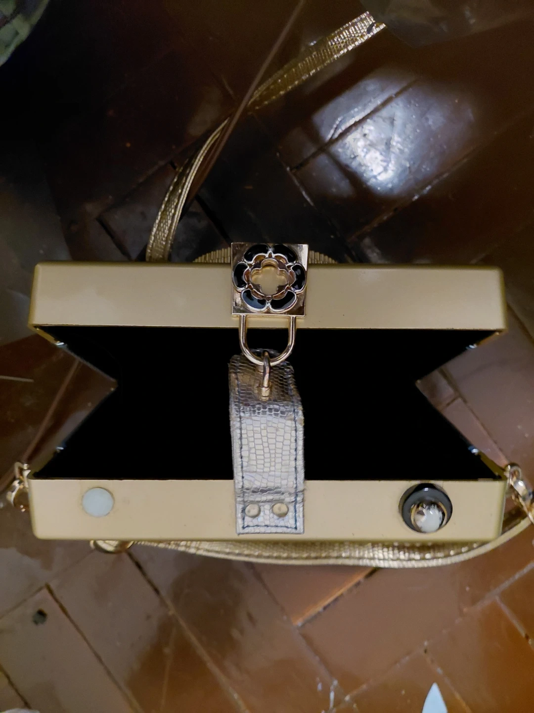 Gold Camera Clutch Bag