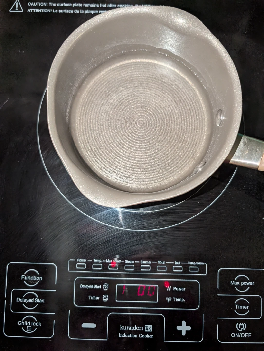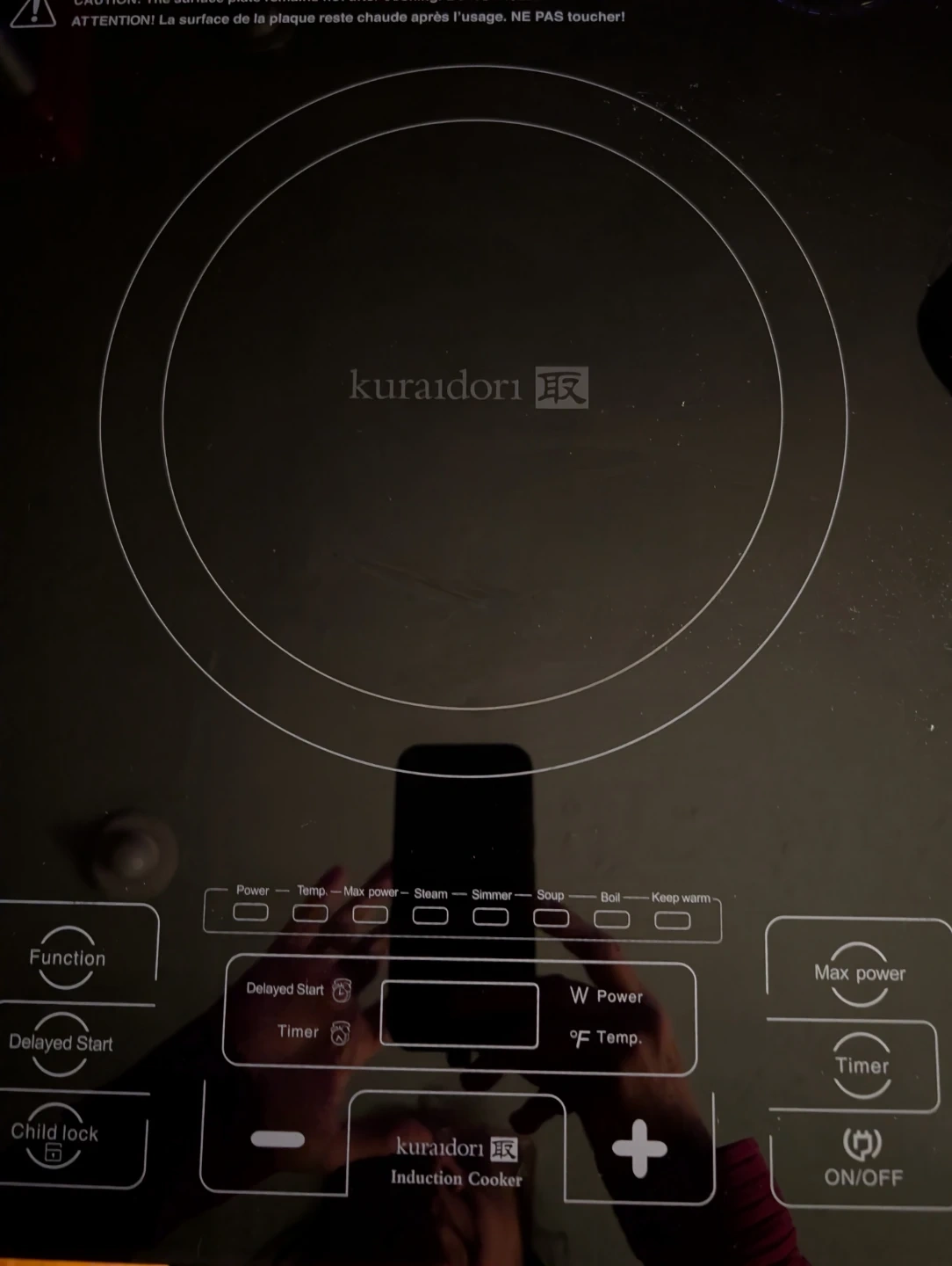 Kuraidori 1800-Watt Portable Induction Cooker with multiple cooking functions. Displays power and temperature settings. Includes delayed start and timer options. Perfect for various cooking needs! Fast and efficient! Easy to clean cersmic glass surface. Maggiejs.ca/review-kuraidoris-portable-induction-cooktop