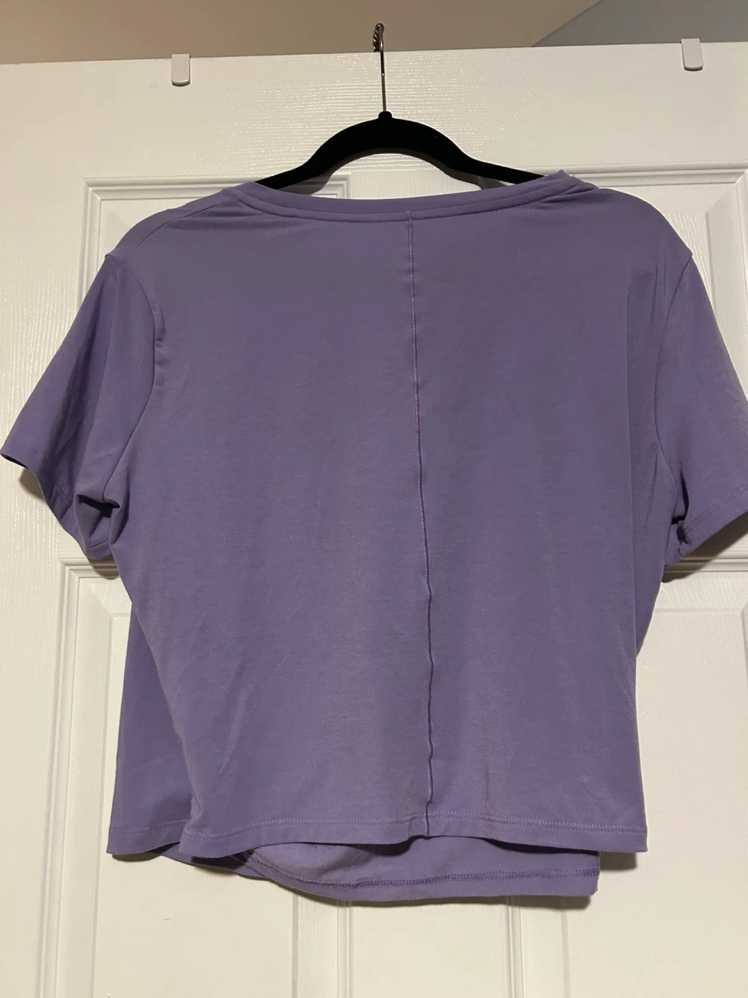 This Nike t-shirt comes in a soft lavender colour with a stylish twist front detail. It's made from a lightweight, breathable fabric, perfect for workouts or casual wear. The cropped style offers a modern silhouette.