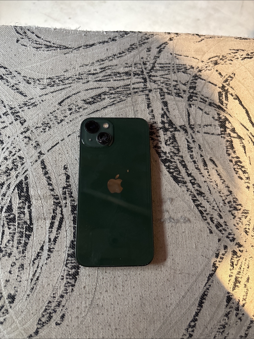 Pre-owned iPhone 13 in Midnight Green. Minor wear and tear. One camera is damaged and the Screen is in okay condition. Still works fine.