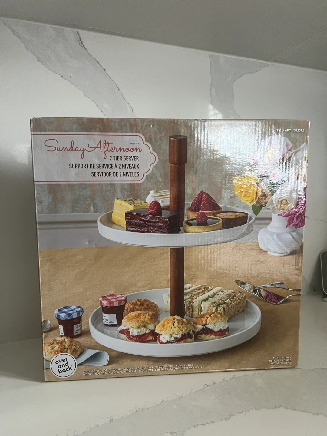 Selling a brand new Over and Back 'Sunday Afternoon' 2-tier server! It comes in its original box, ready for your next afternoon tea or dessert display