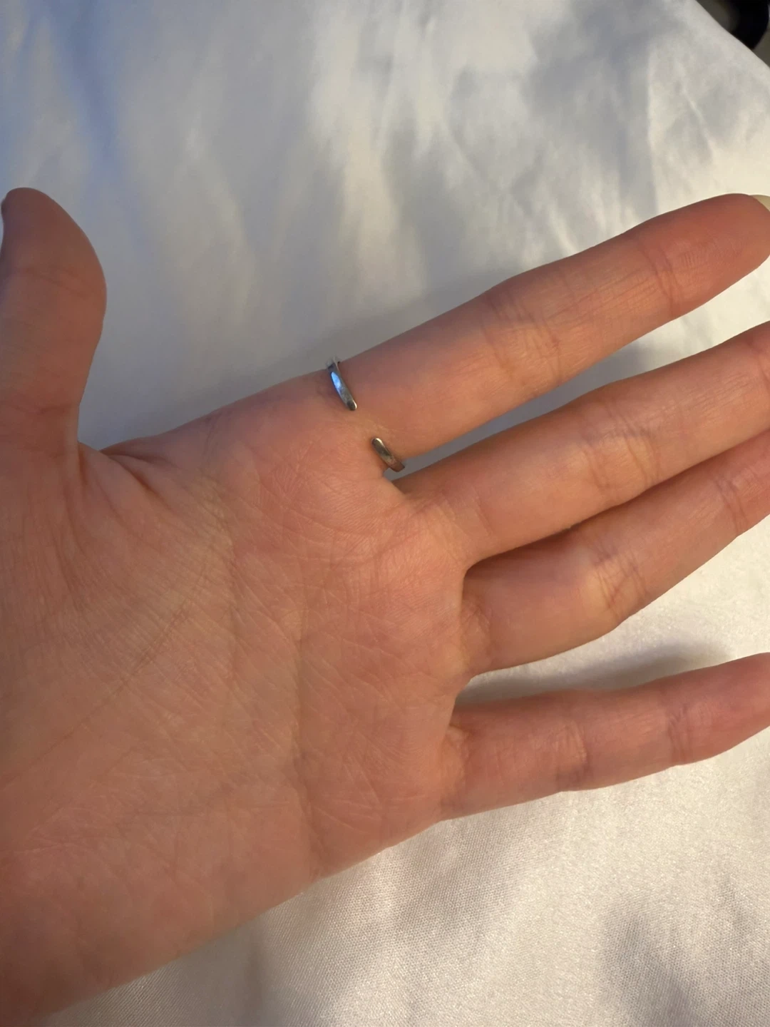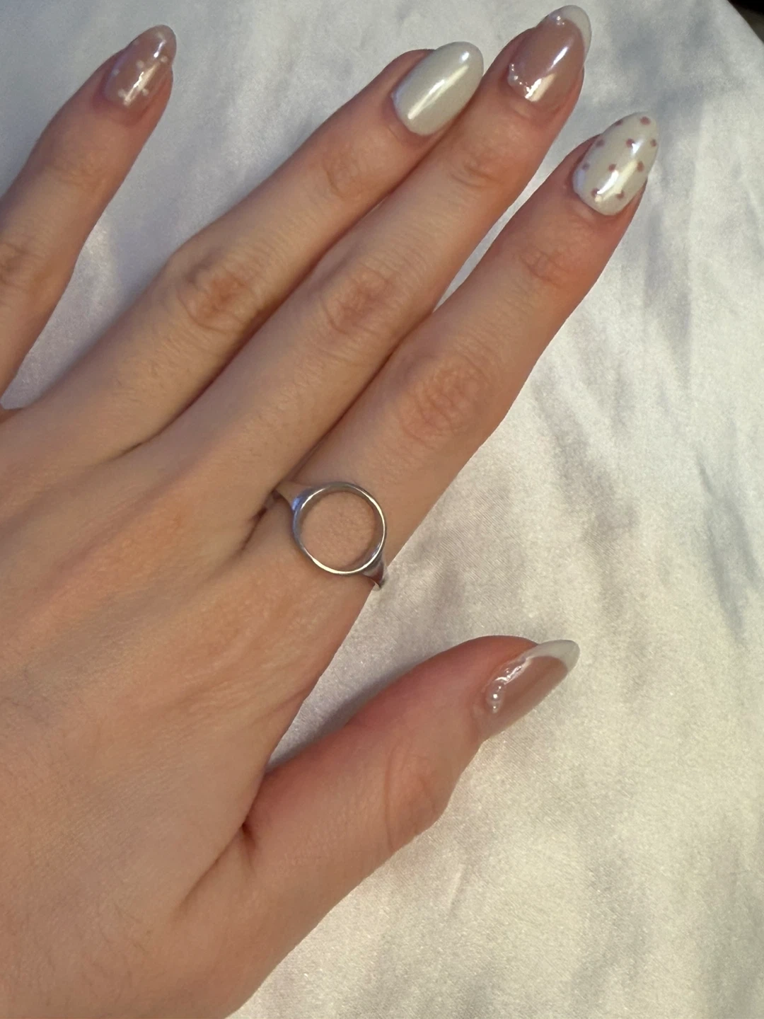 A chic silver-tone ring featuring an open design with a circular motif. It's adjustable for a comfortable fit on various fingers. This minimalist ring adds a subtle touch of style to any outfit.