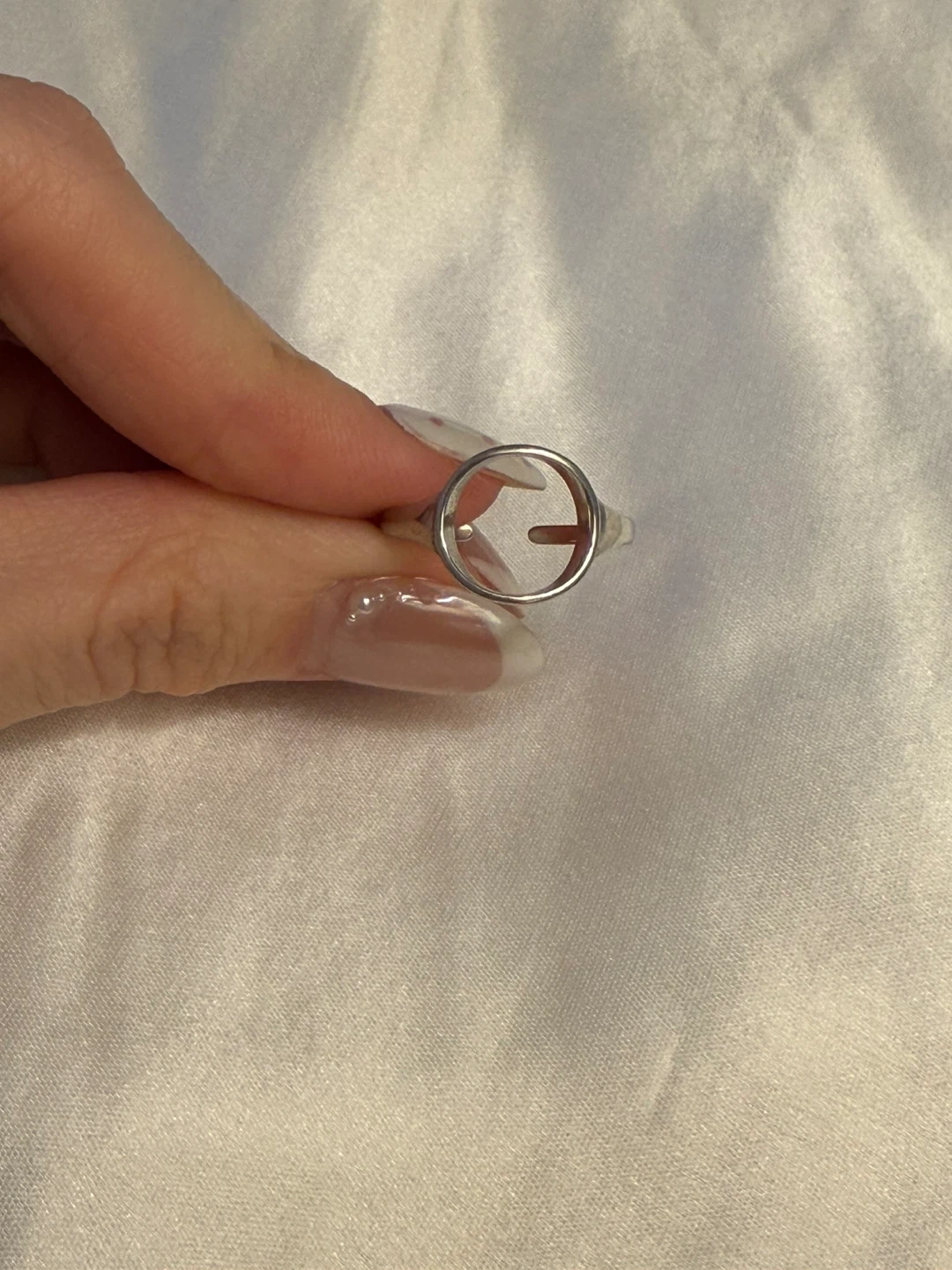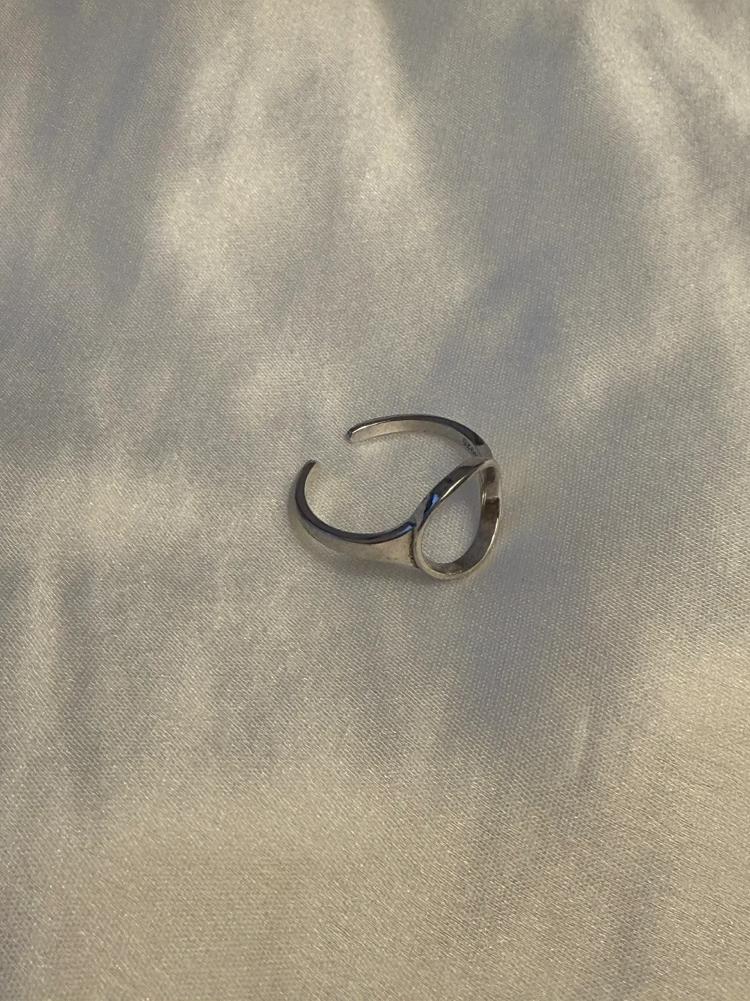 A chic silver-tone ring featuring an open design with a circular motif. It's adjustable for a comfortable fit on various fingers. This minimalist ring adds a subtle touch of style to any outfit.