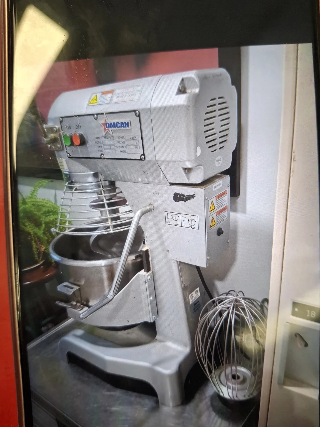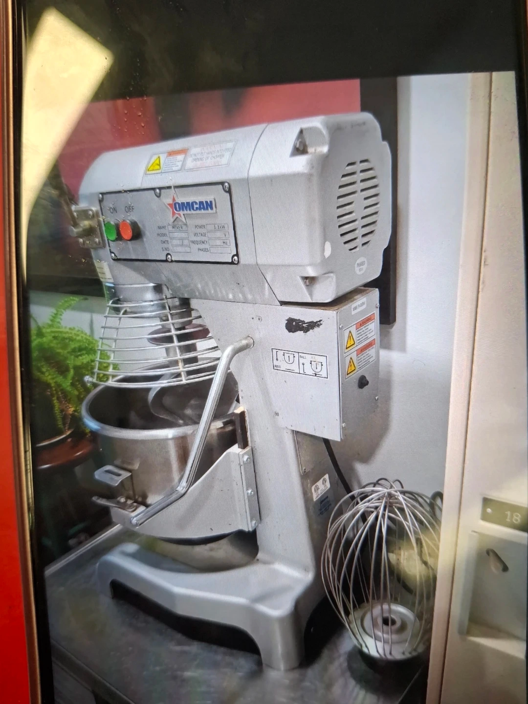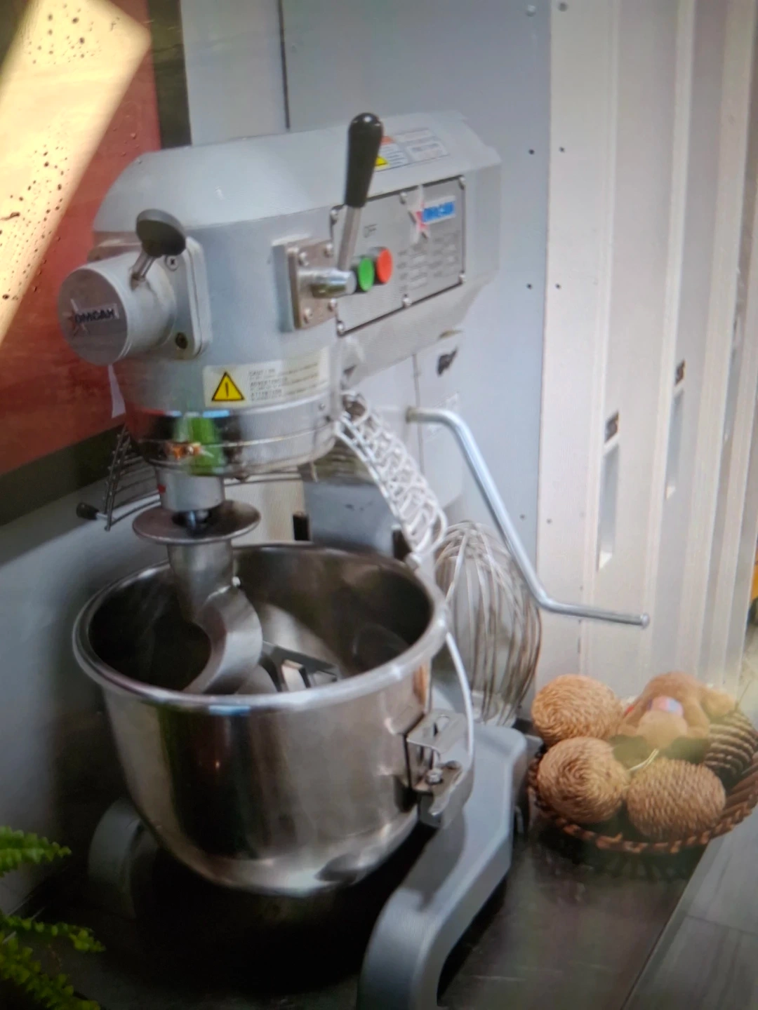 Commercial stand mixer with a 1.1kW motor. It's designed for heavy-duty use in kitchens. Stainless steel bowl included. 20 quarts