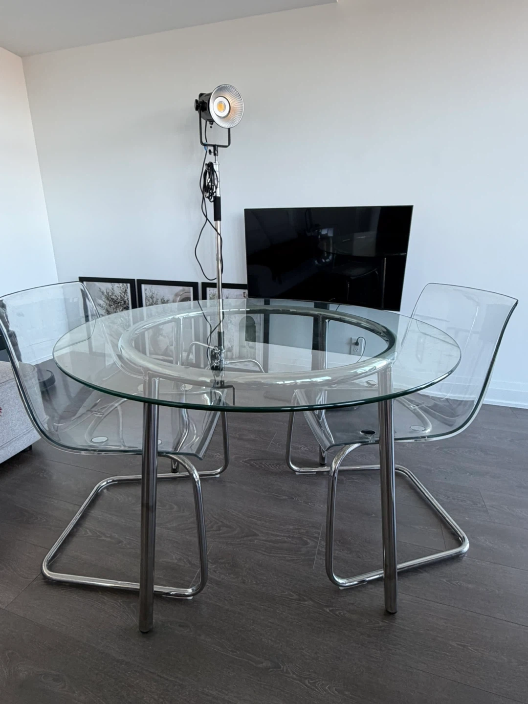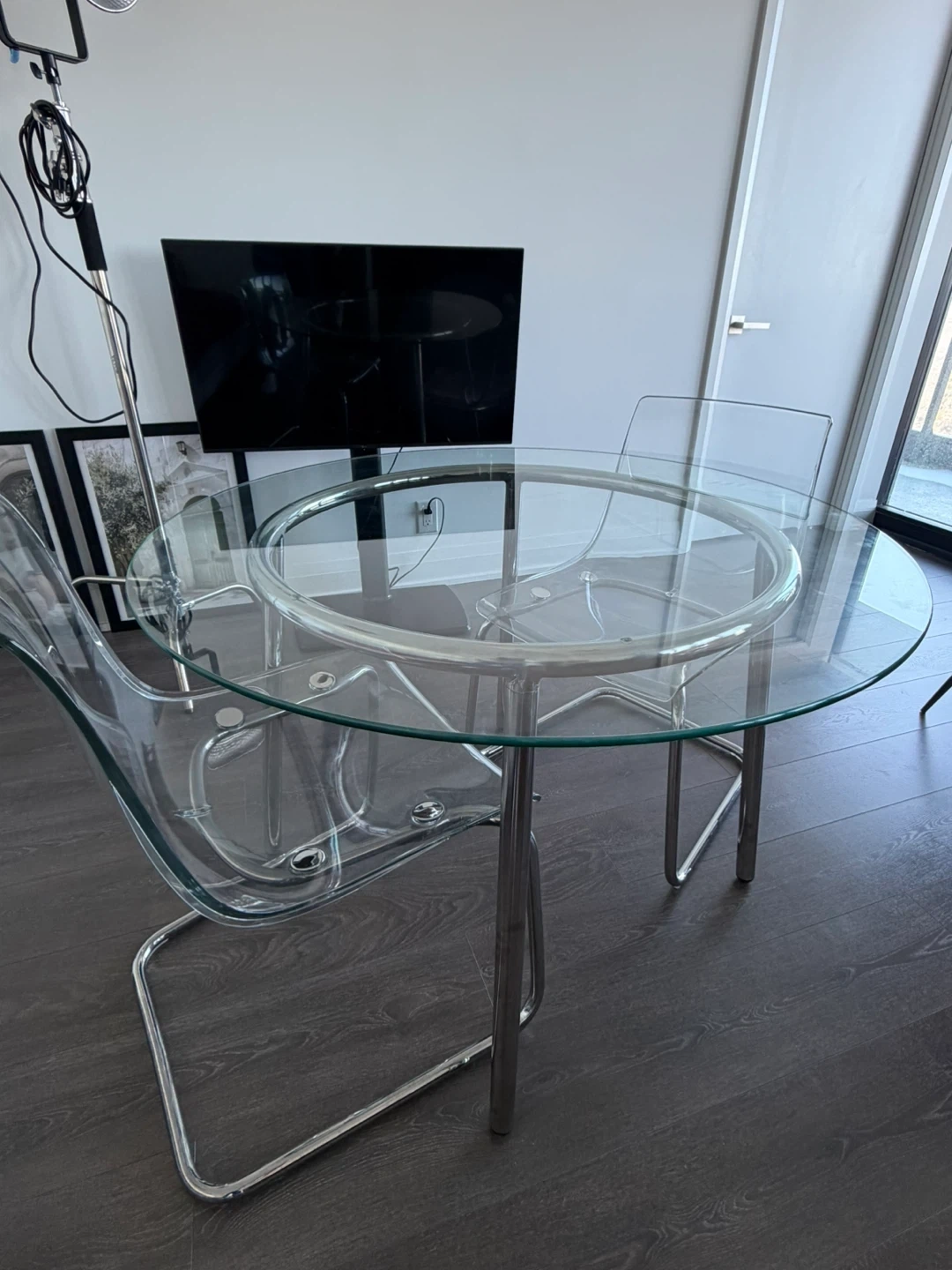 Clear Glass Dining Table + 2 acrylic chairs