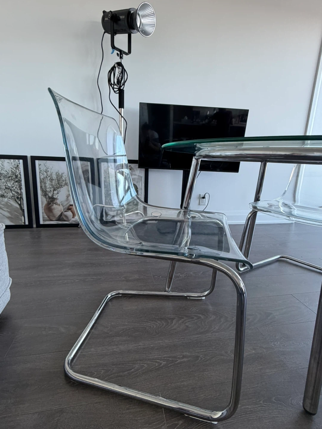 This comes with a bonus 2 acrylic chairs in good state as well that match the table.
