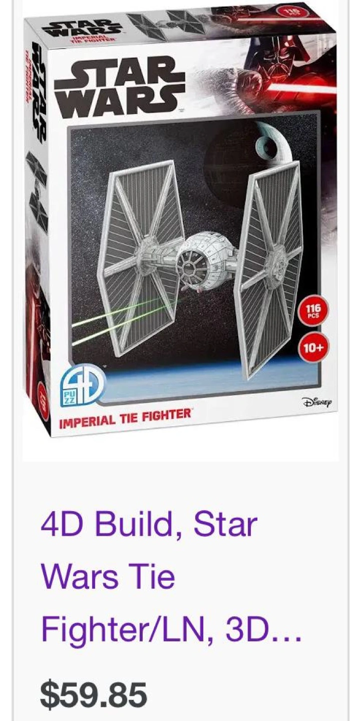 WwRetail price is $59.85, but I’m selling it for only $45! Brand new and sealed. 4D Precision Model Kits introduces to you the official 4D Star Wars Imperial TIE Fighter. Manufactured with Precision Core-Gate Technology, each model is an Official Star Wars Licensed Product.