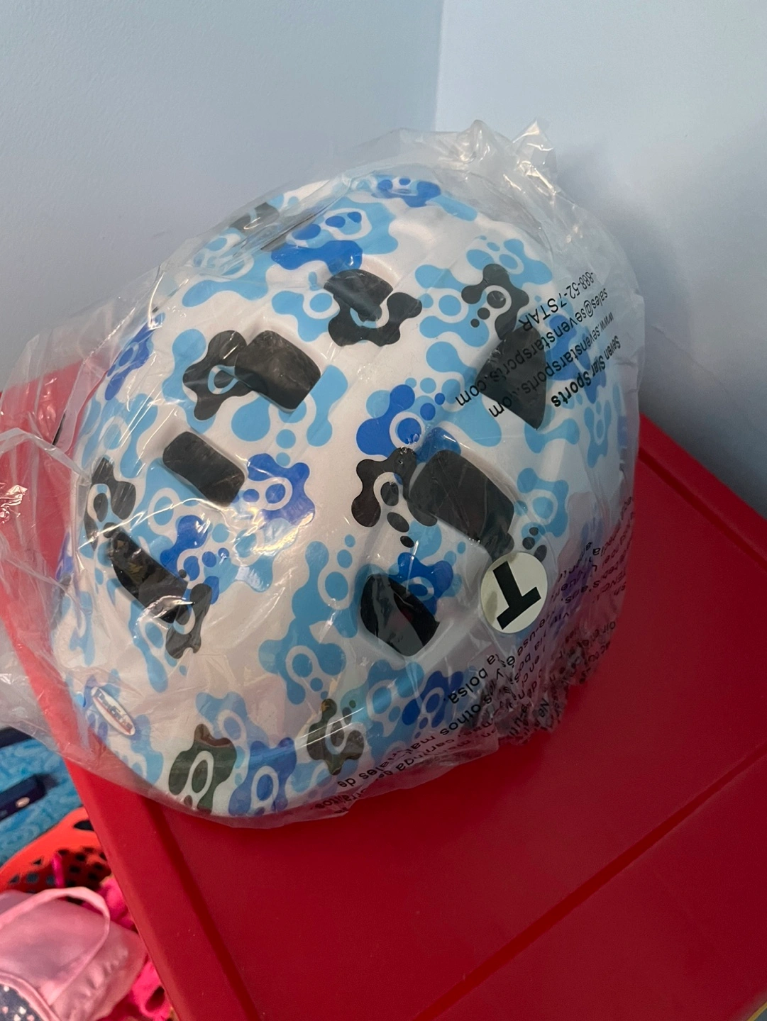 To be honest, I’m not sure what size it just says T on it so if you look that up and see what size that is, and then you will know. Assuming that that stands for toddler.