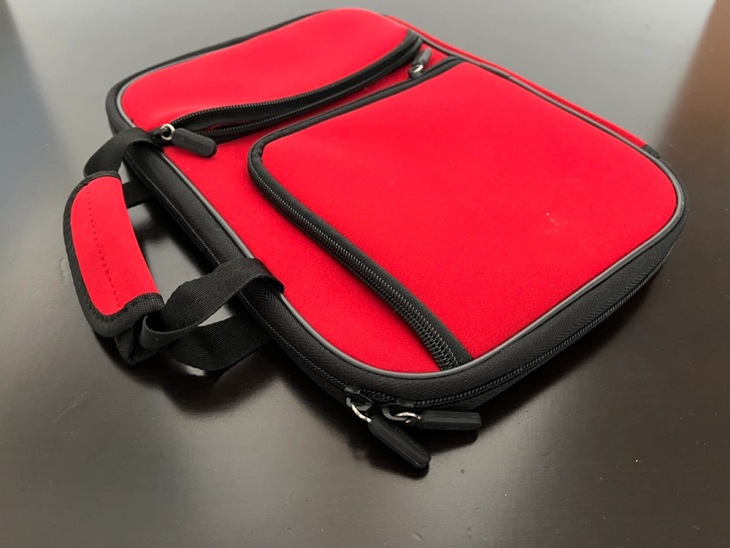1000+Nice bag for iPad, Tablet or small laptop - up to 11”. Features a main compartment, smaller zippered pocket, and carry handle.