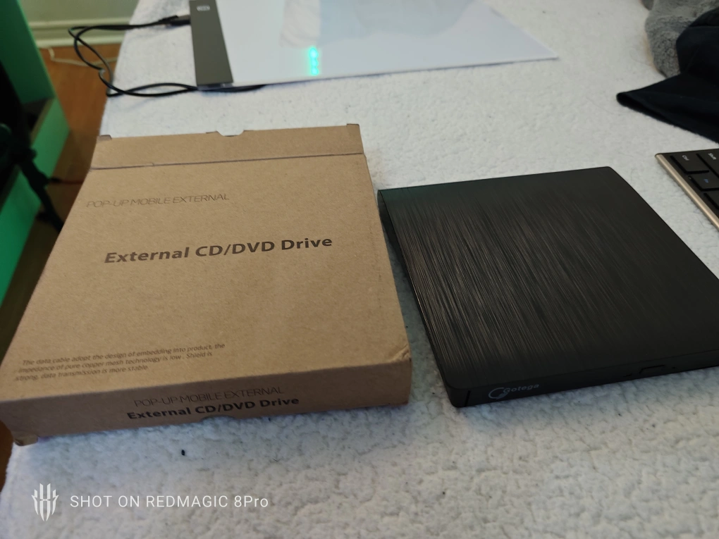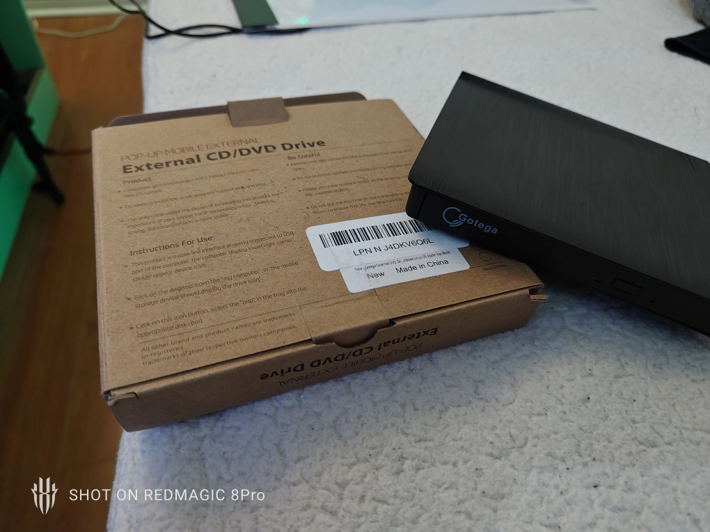 Slim and portable external CD/DVD drive. Plays and burns CDs and DVDs. Includes USB cable. Excellent condition. Perfect for laptops or desktops.