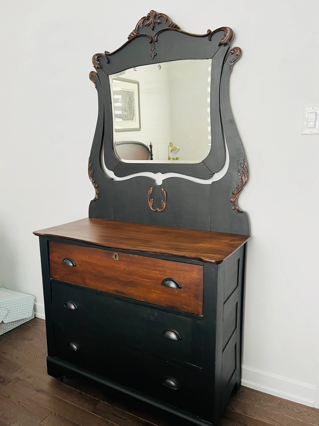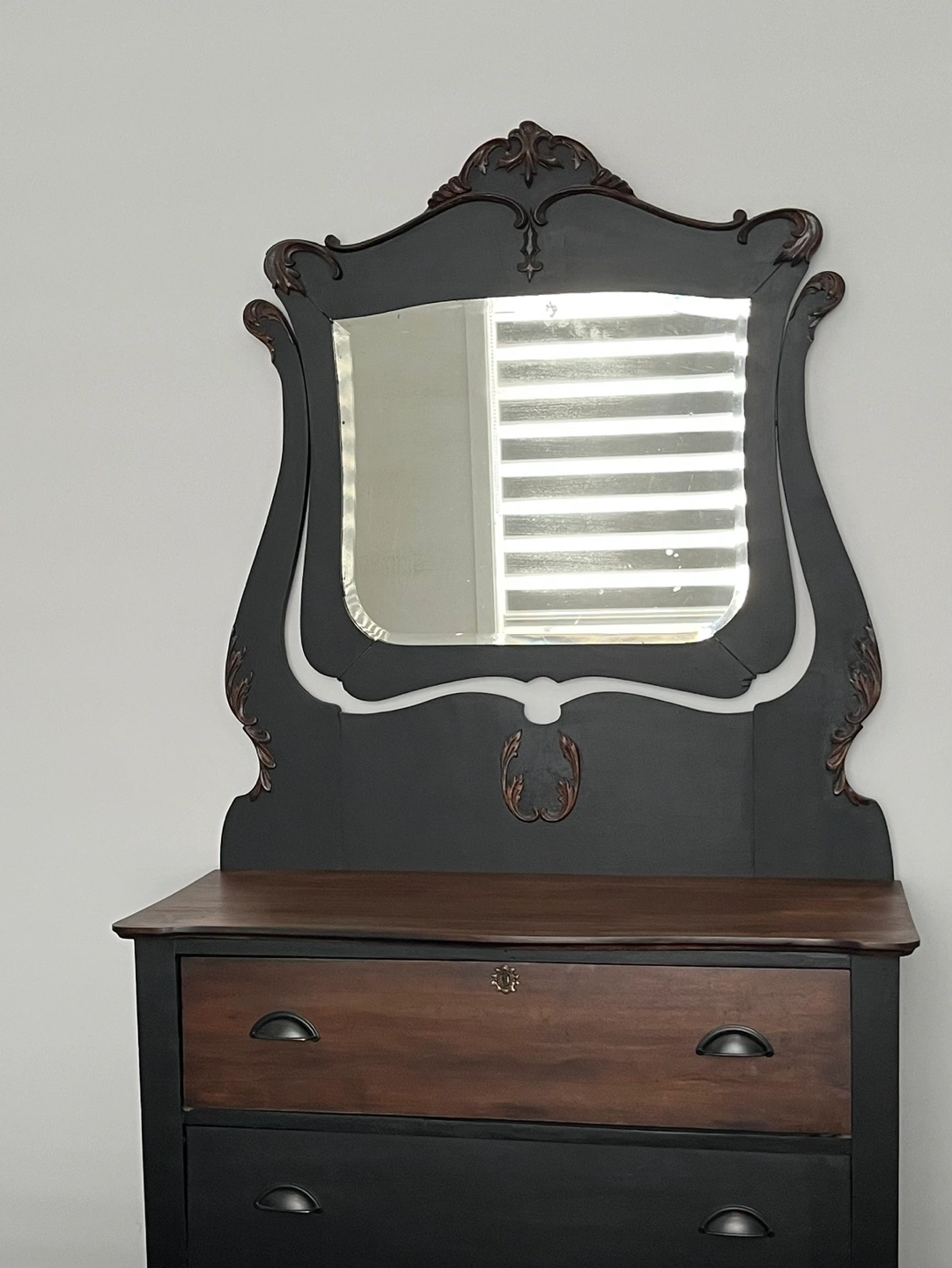 Vintage dresser with attached mirror/mirror is removable for easy transport.