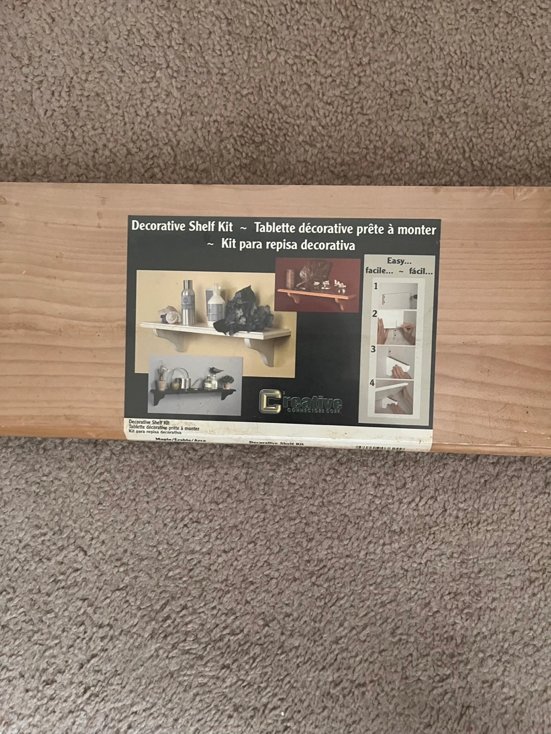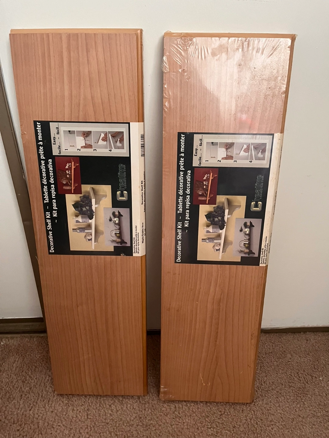 Two new, unopened Creative Converting decorative shelf kits. Easy to assemble. Includes shelf and mounting hardware. Perfect for adding storage or display space. Maple colour.