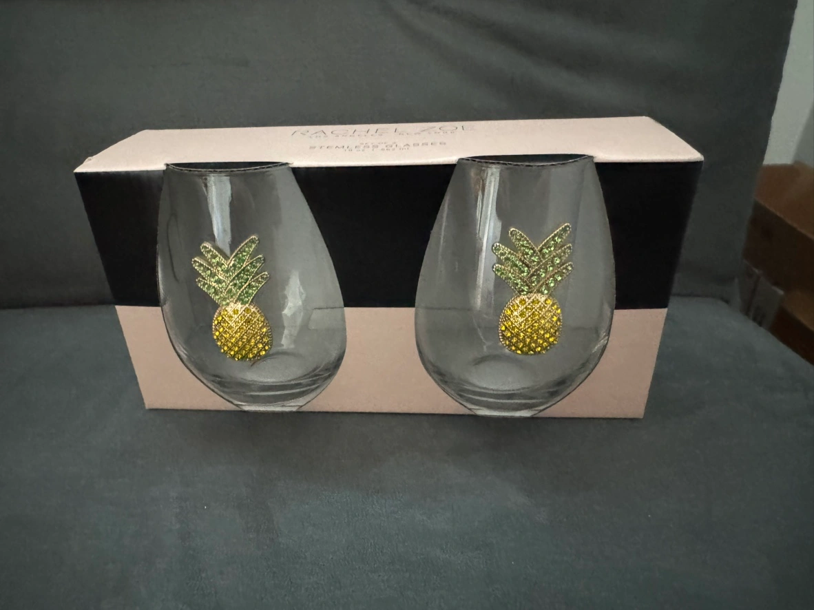 Rachel Zoe Stemless Wine Glasses Set of 2 Pineapple Brand New