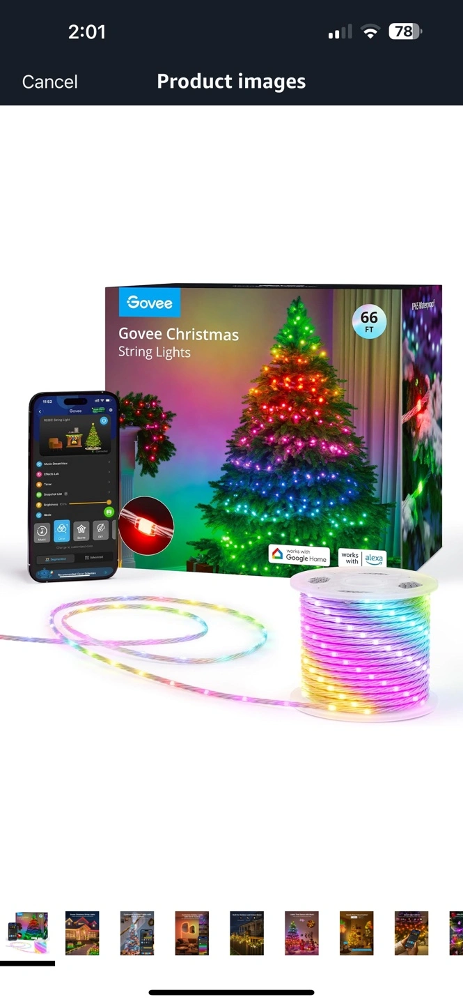 Colourful LED string lights. 66 LEDs. Works with Alexa and Google Home. Uni-IC control lets you customize each light. Create festive ambiance.