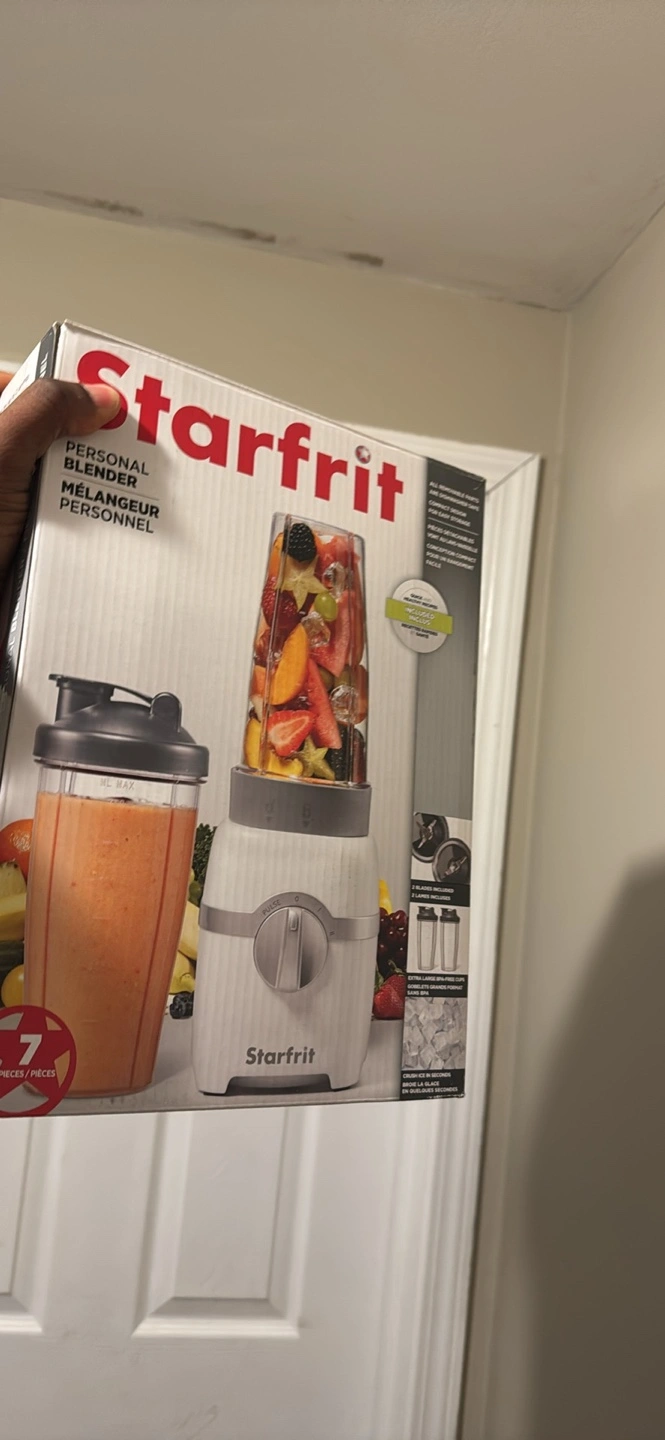Brand new Starfrit personal blender. Includes two 828 ml cups. Stainless steel blending blade. Variable speed control. Perfect for smoothies and shakes.