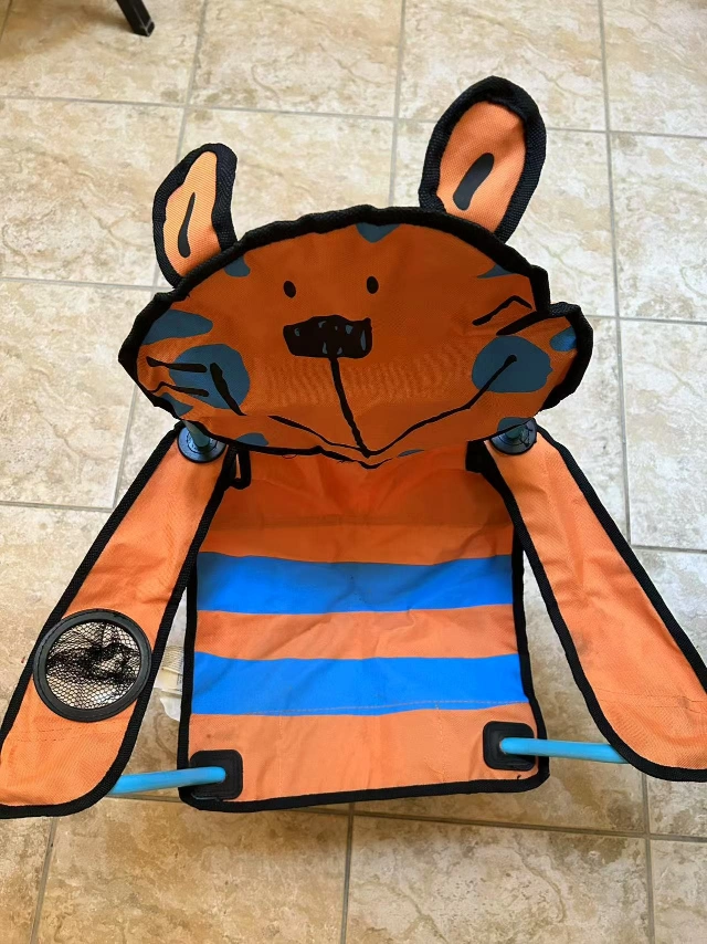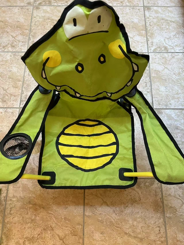 Two adorable foldable kids' chairs. Tiger and dinosaur. Lightweight and portable. Perfect for indoor or outdoor use. Great for picnics, camping, or playtime. $10 each.