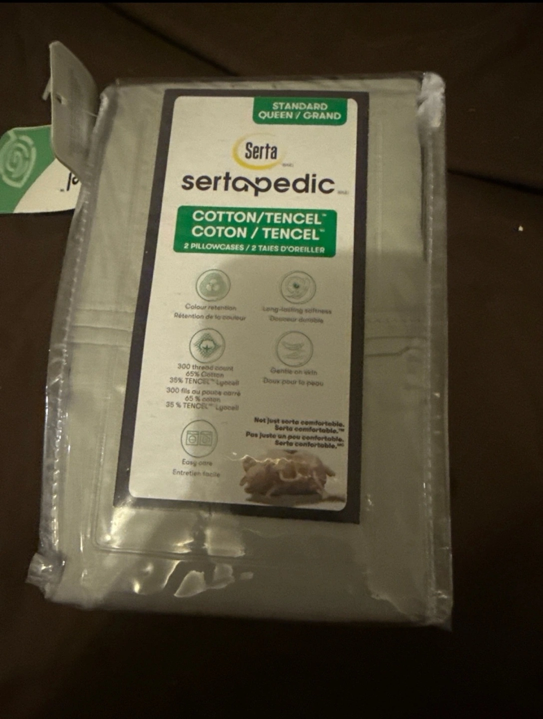 New Sertapedic queen-size pillowcases. Cotton and Tencel blend. 300 thread count. Easy care.
