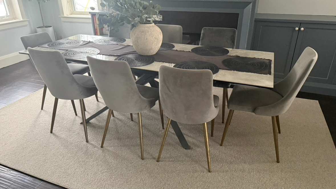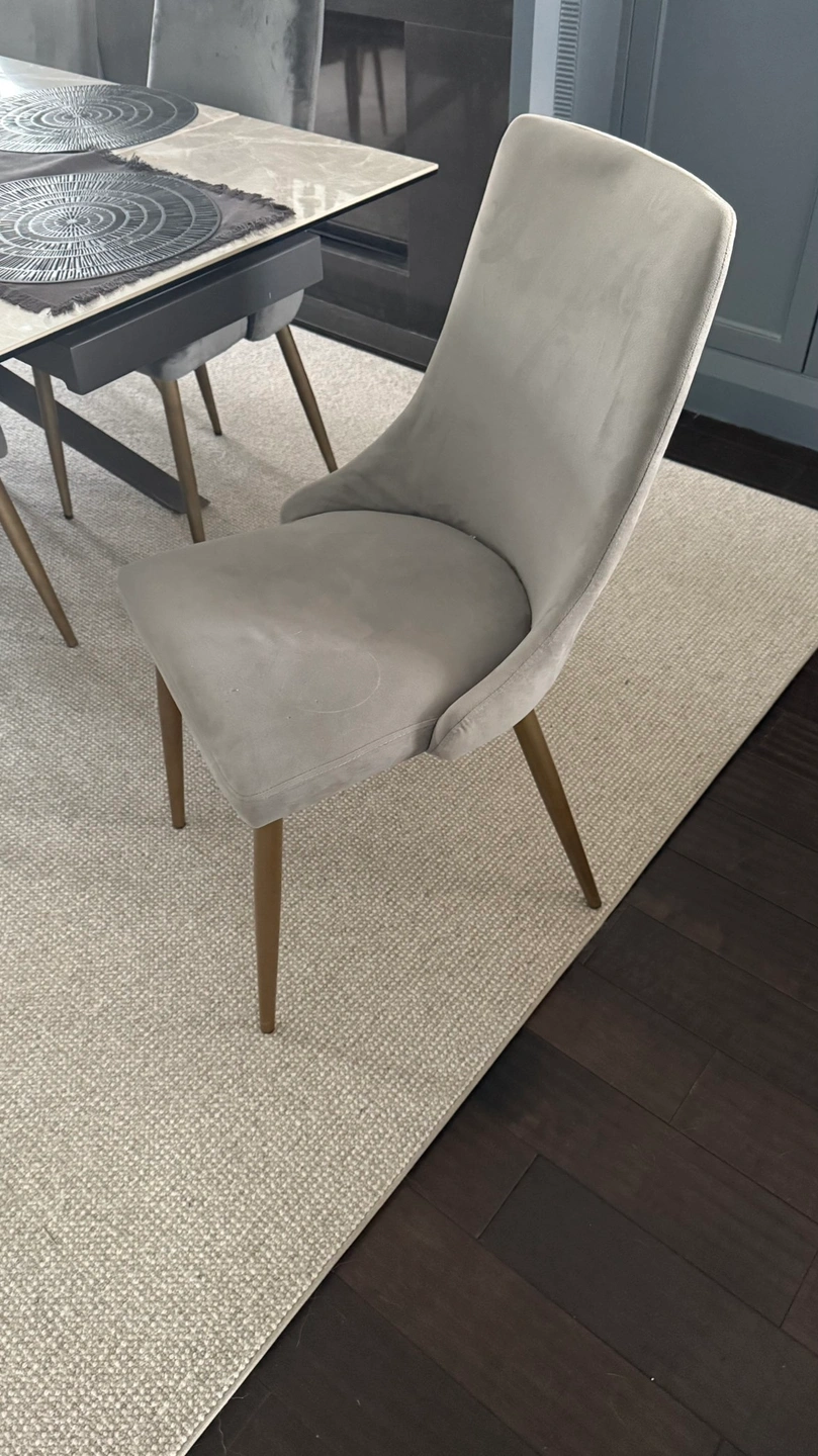 !nspire Dining Chair - 35.75-in - Light Grey Velvet and Golden Base - Set of 7