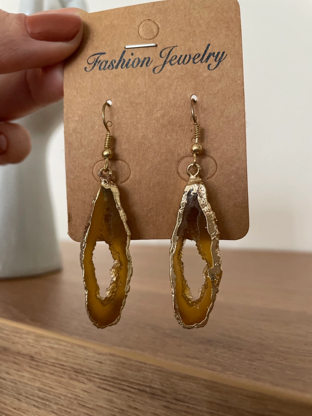 Unique gold-toned earrings. Agate stone design. Lightweight and stylish. Perfect for everyday wear or special occasions.