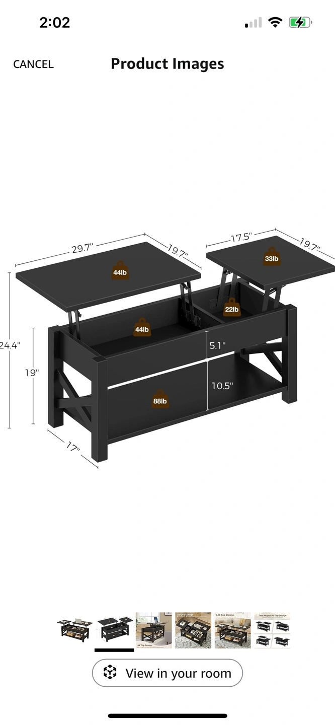 Black Lift Top Coffee Table with Storage