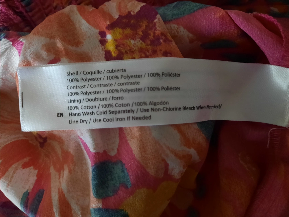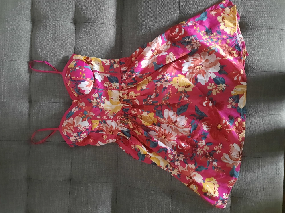 Pink floral dress. Size medium. Fits small. Spaghetti straps. Elasticated waist. Lightweight material. Perfect for summer.