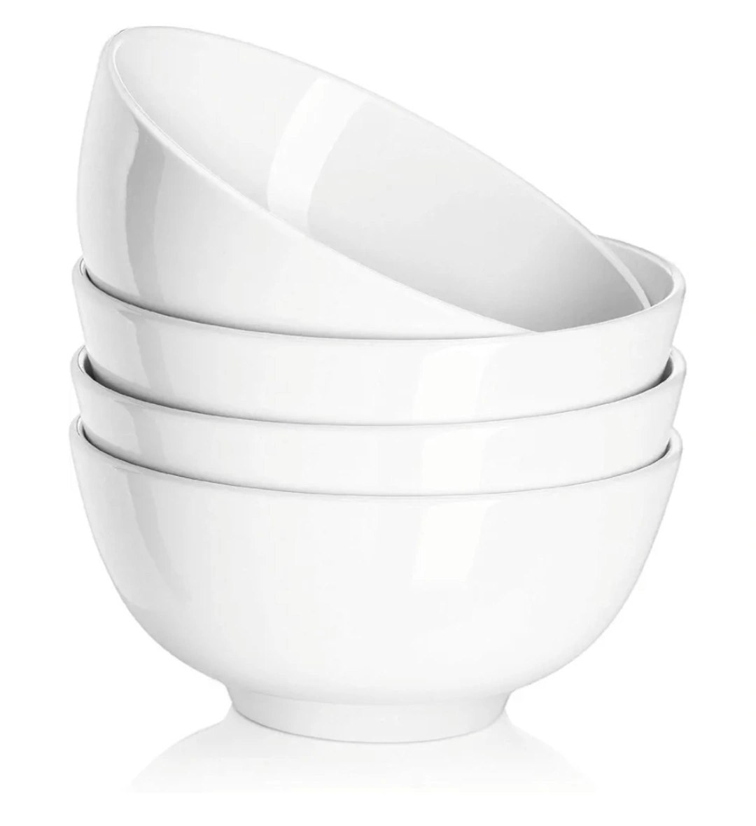 Set of four porcelain soup bowls. 30 oz capacity. Perfect for soup, cereal, or dessert. Microwave and dishwasher safe.