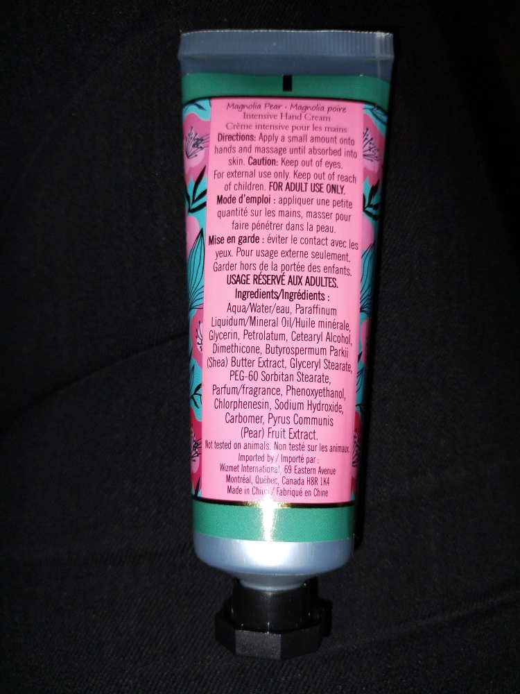 60 ml tube of intensive hand cream in Magnolia Pear scent. Opened to try it and used a very small amount, so it's still 95% full.