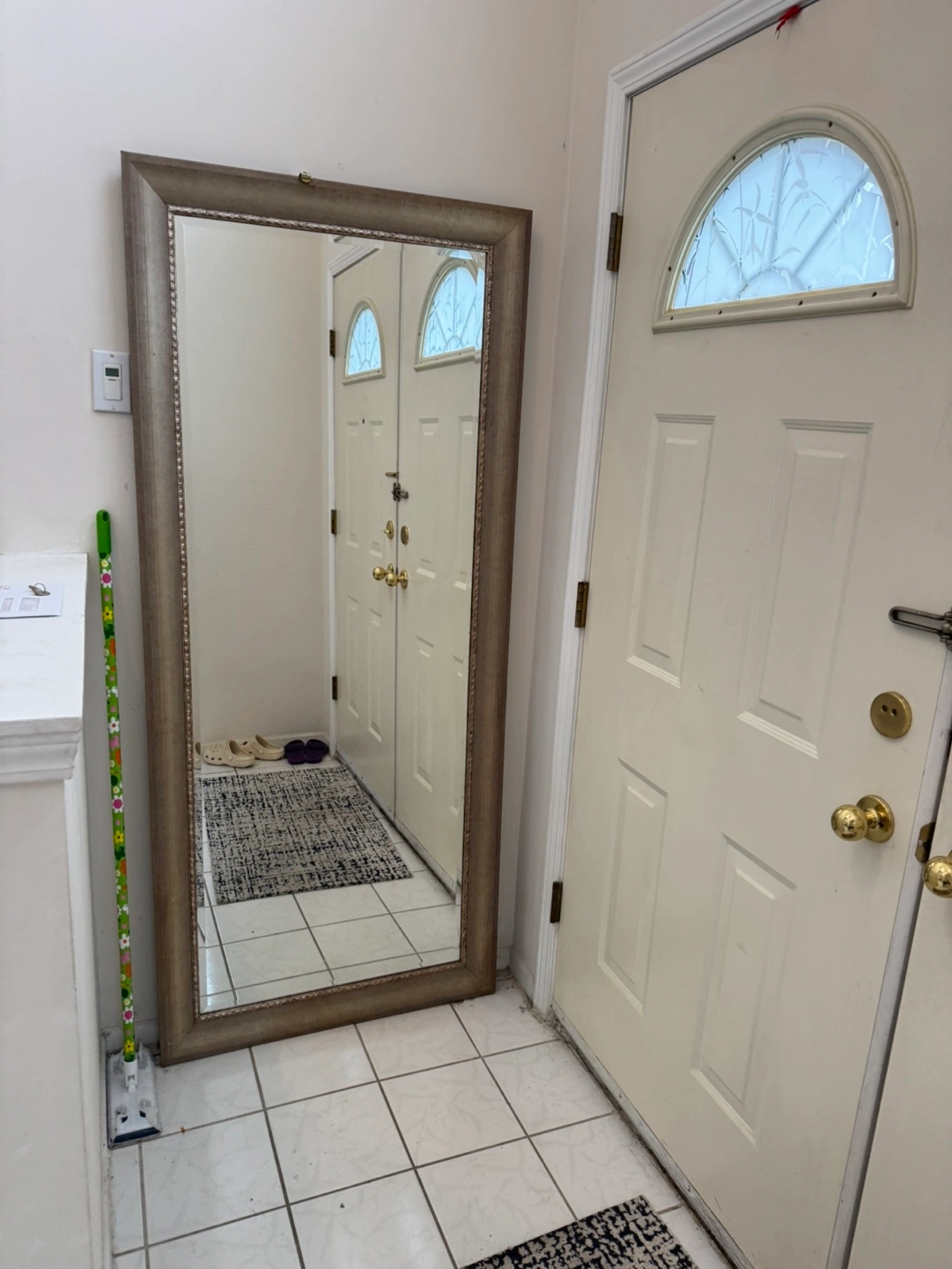 Elegant full-length mirror. Features an ornate silver frame. Perfect for entryway or bedroom. Measures approximately 74” x 32”