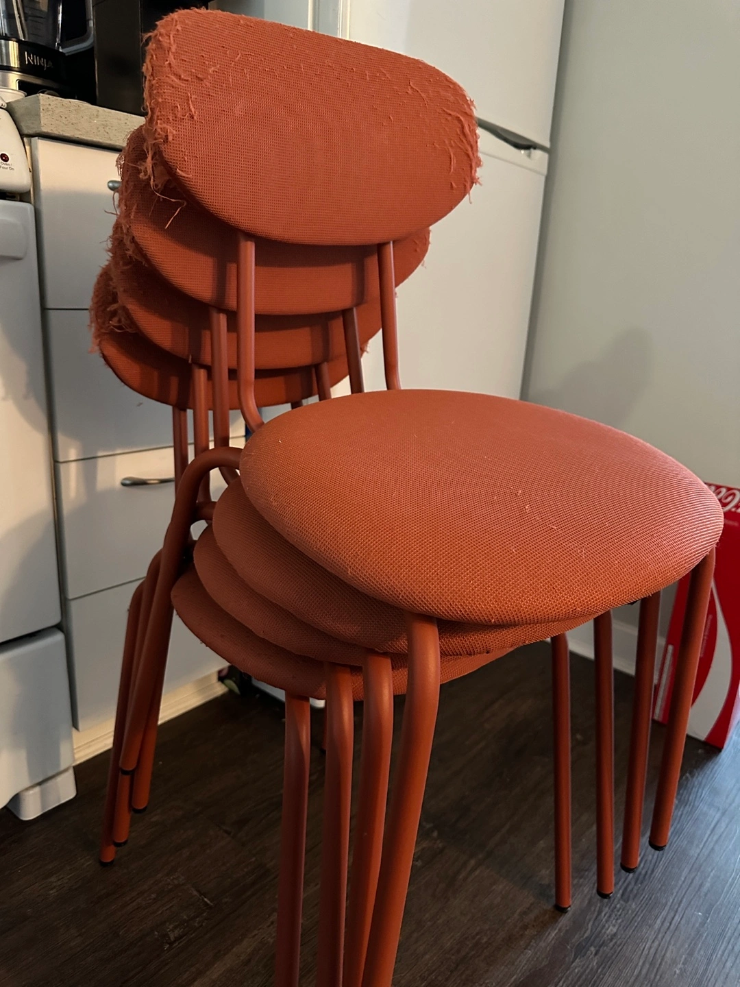 Buy & SellIKEA Ostano Chair - Four terracotta dining chairsIKEA Ostano Chair - Four terracotta dining chairs$20Set of four dining chairs. Terracotta coloured fabric seats and metal legs. Some wear and tear on chair seats because my cat scratcheed.ConditionOkayWHERE TO MEETCartierView MapSELLERverifiedDamlaW End17111 reviews0 chats·1 favorites·36 views