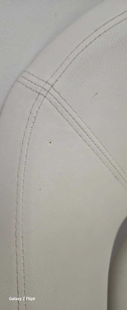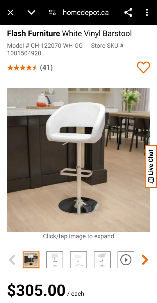 The Contemporary White Vinyl Barstool with Chrome Base is a great fit for your breakfast bar or kitchen counter.The stool has a rounded mid-back design and a cutout back. Its seat and back are padded with 1.5 inches of CA117 fire retardant foam and upholstered in vinyl. The height adjustable swivel seat easily adjusts from counter to bar height using the convenient gas lift handle, located just below the seat. The shiny chrome base and footrest complement the stool's modern design. A plastic ring, embedded in the base, protects your floor by sliding smoothly when you need to move the stool.Designed for residential use, this adjustable height barstool is an excellent choice when you need a versatile seating option for your home.