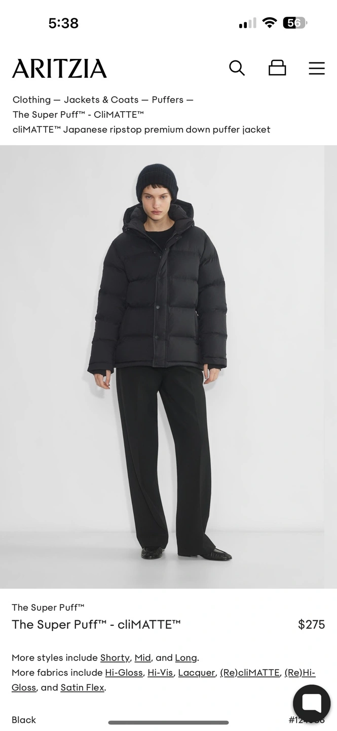 Aritzia Super Puff cliMATTE Down Jacket - Size Medium