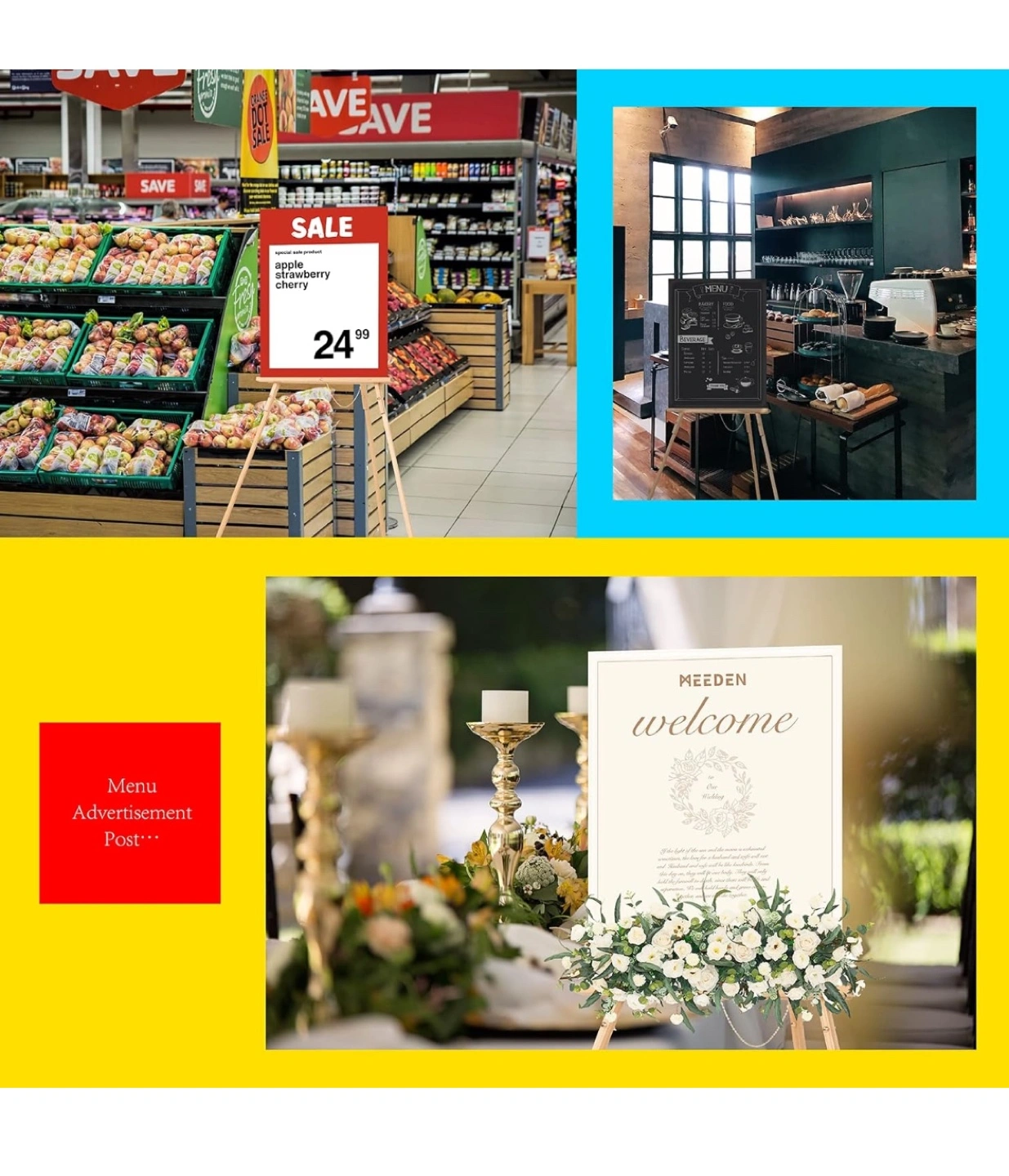 New Portable wooden easel. Lightweight and easy to assemble. Holds canvases up to 40 inches high. Ideal for displaying artwork, menus, or signs. Great for home, office, or events.
