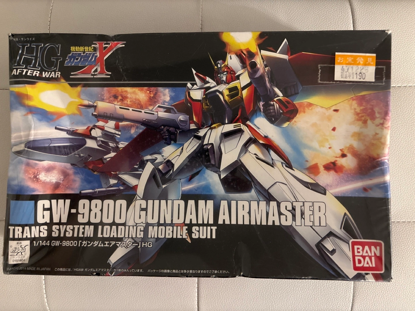 New in box Bandai model kit. 1/144 scale Gundam Airmaster. Trans System Loading Mobile Suit. After War X series. Box is sealed in plastic but has some minor dents, contents are undamaged.