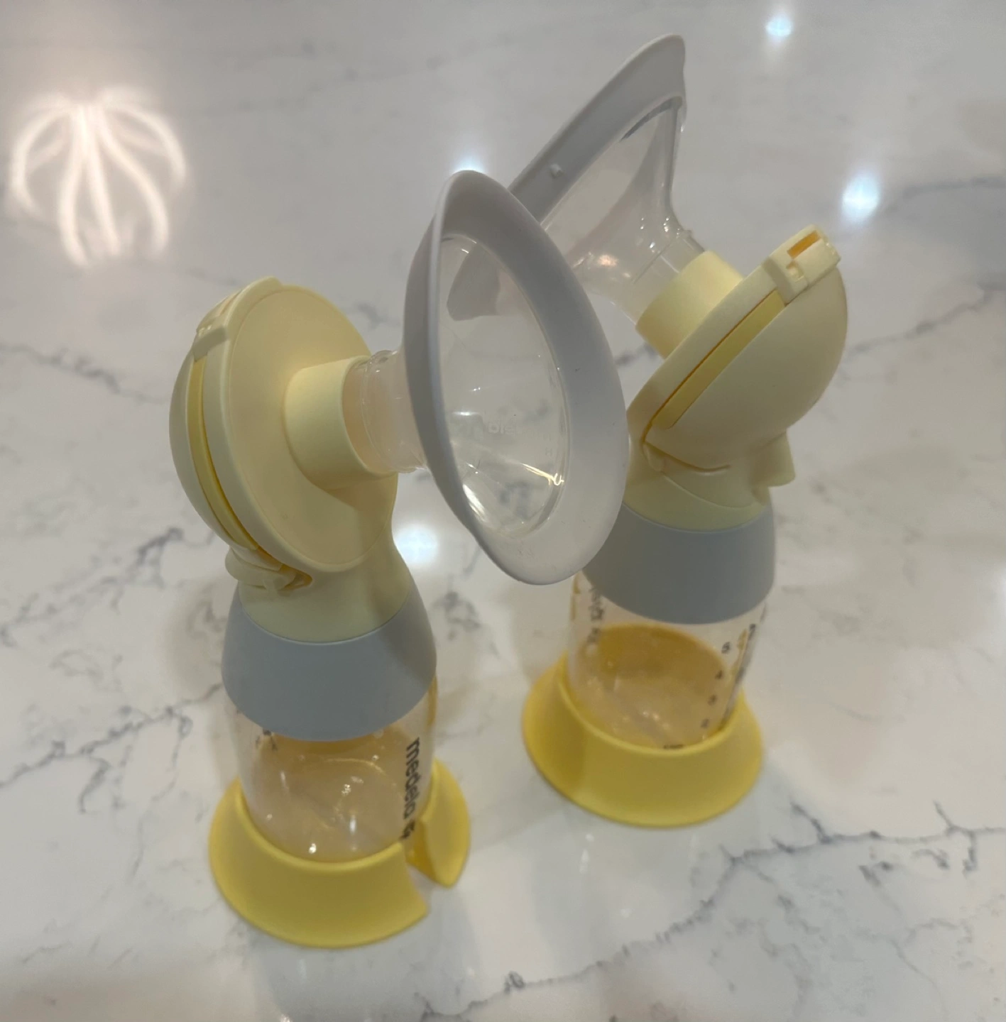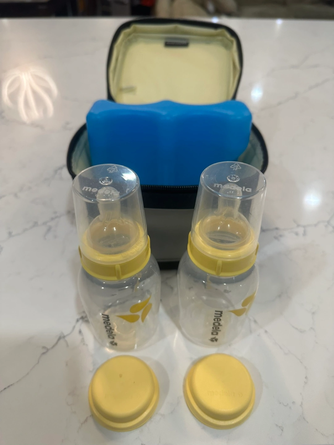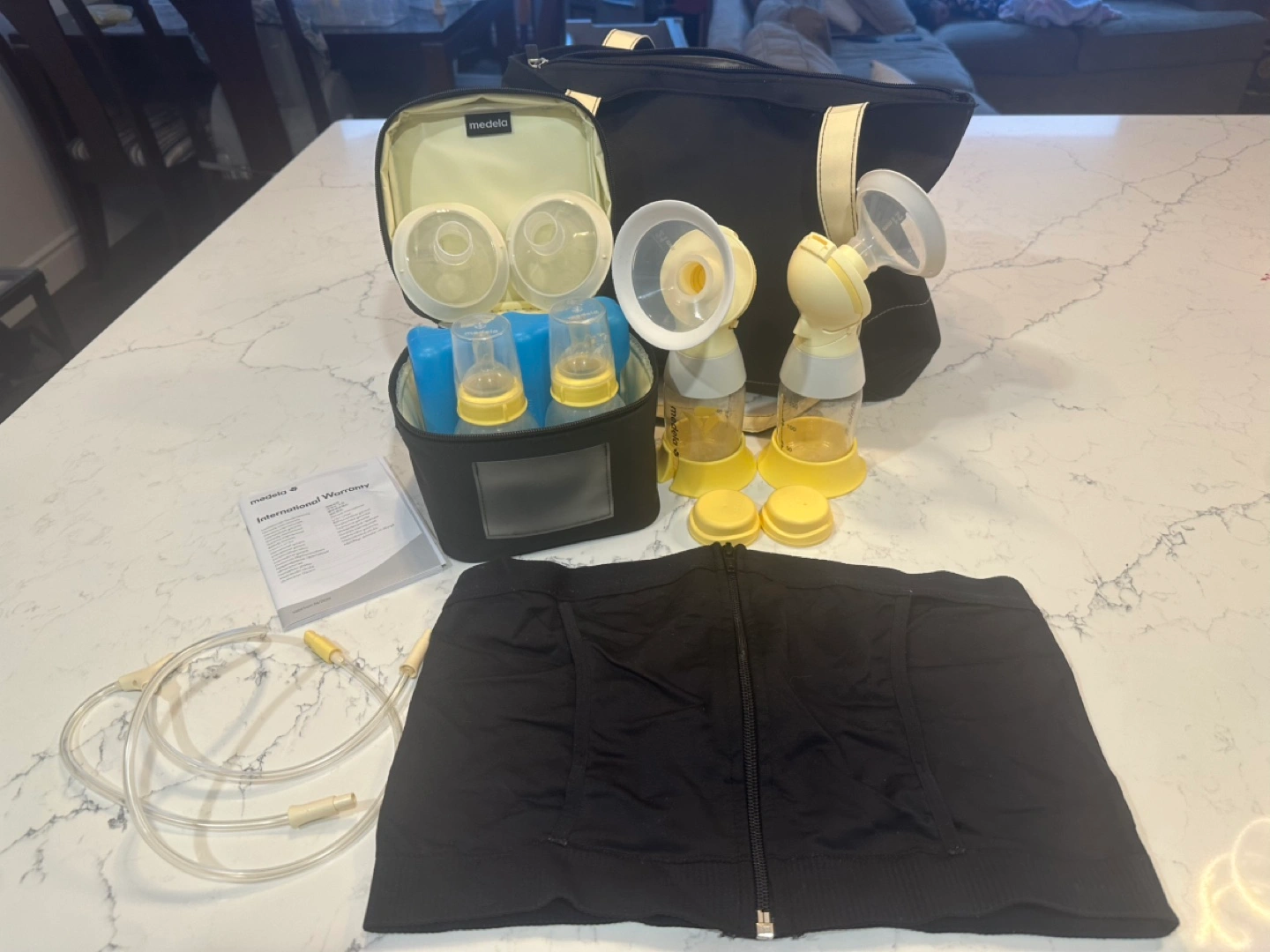 Excellent Used Condition! It has been in storage for a few months. I’ve included an XL Medela Hands Free Pumping Bustier and 2 nipples with travel caps.