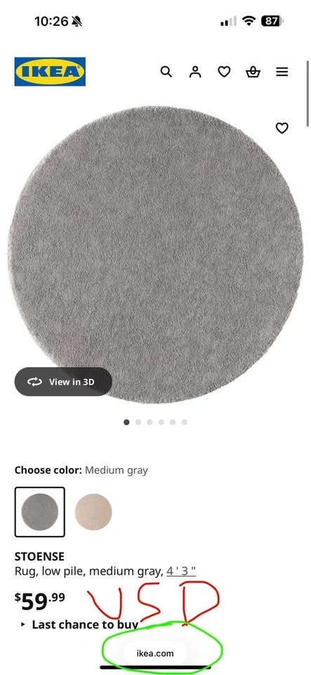 IKEA STOENSE Round Rug (Medium Grey) 130 cm
