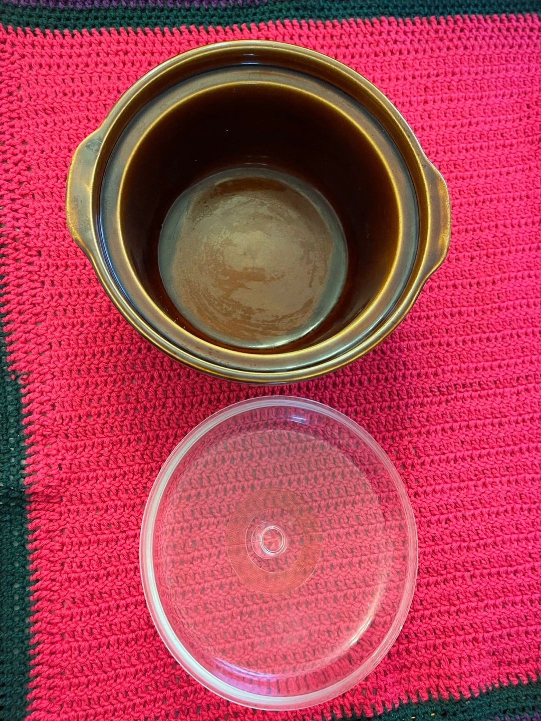 Vintage Brown Ceramic Slow Cooker with Glass Lid