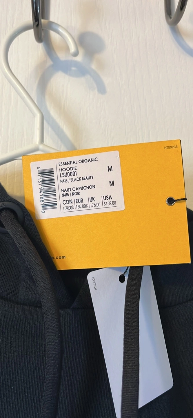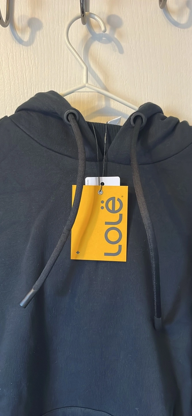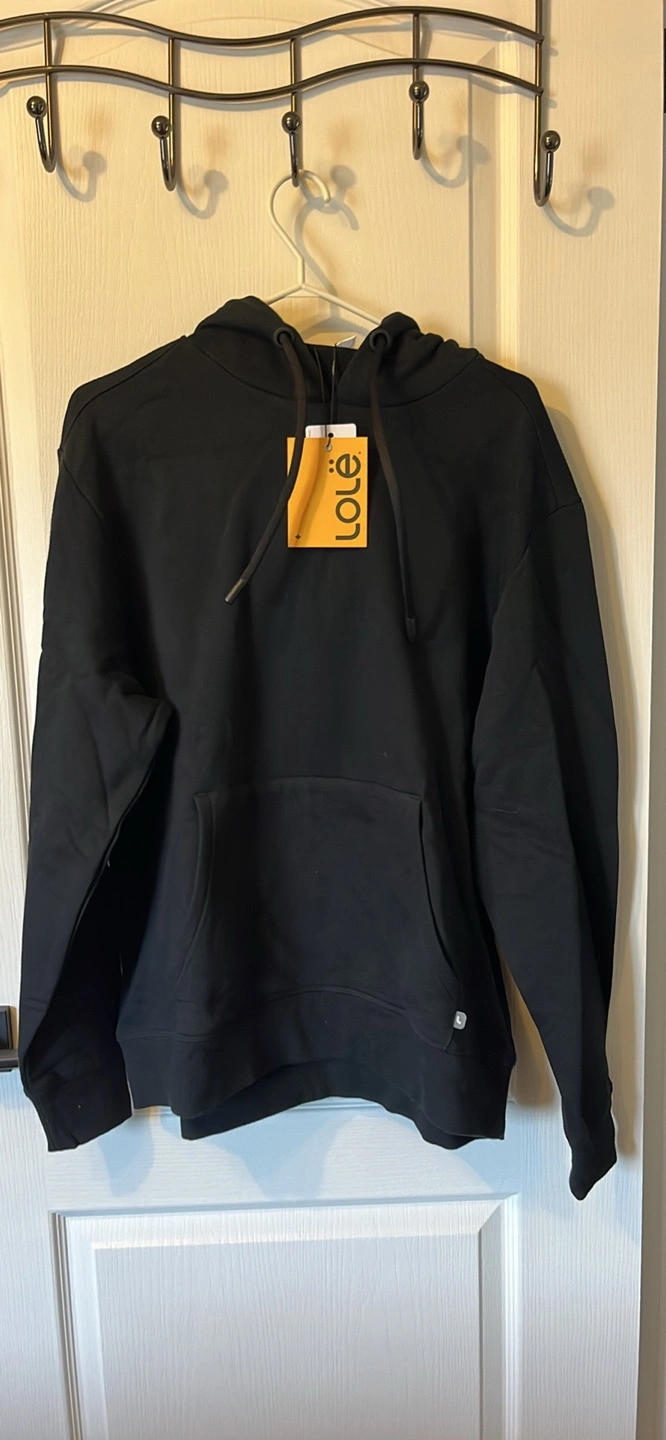Lole Essential Organic Hoodie. Colour: Black Beauty. Size Medium. New with tags. Relaxed fit. Soft cotton. Kangaroo pocket. Regular $159.