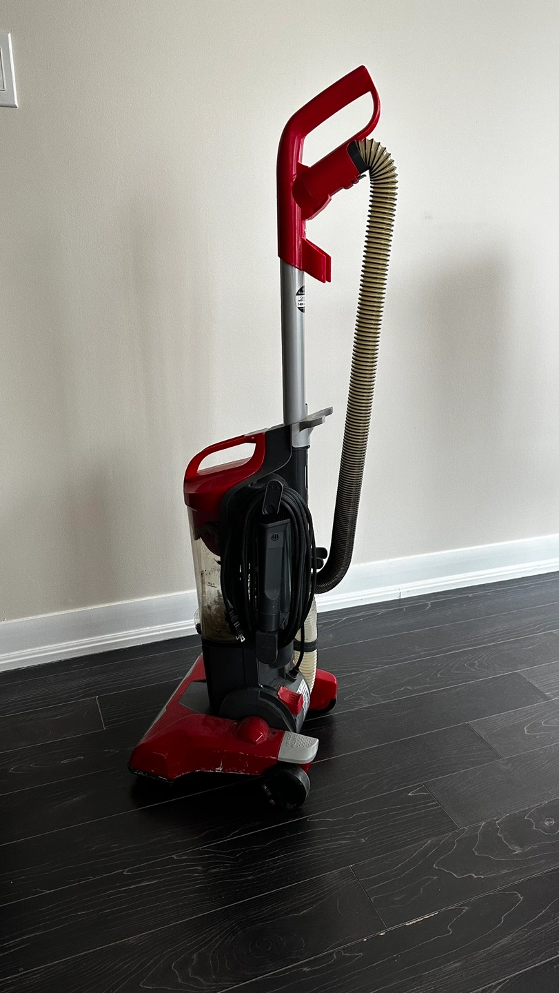 Dyson Featherlite vacuum with a long cord and a hose for attachments (one included). Red and black. Works well but I got a new one so don’t need this anymore.