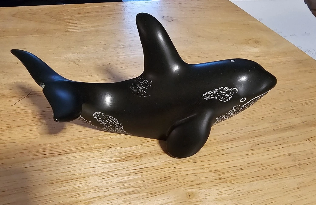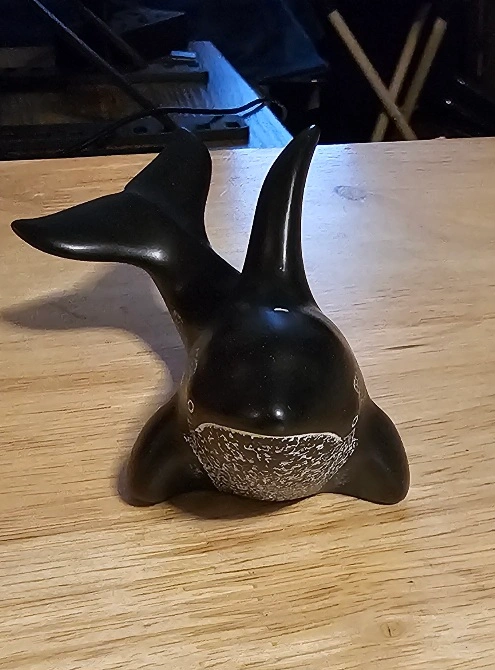 Black orca whale figurine. Small size. Detailed carving. Unique design.