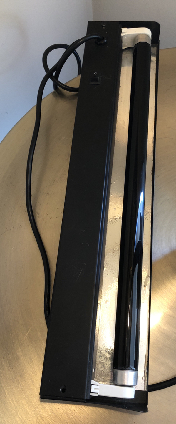 In good working condition. Can be screwed to a wall or put behind furniture. Black light bulb included. Plugs into a standard outlet. Approx 18” long.